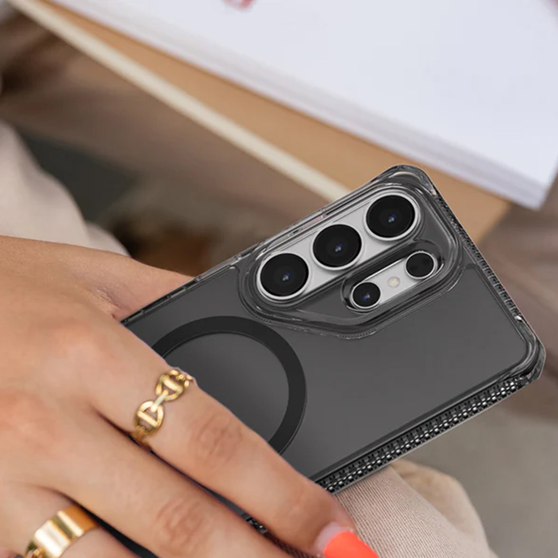 ITSKINS HYBRID R // CLEAR with MagSafe for Samsung Galaxy S26 Ultra Drop Protection up to 4m. HYBRID R // CLEAR w/ MagSafe Crafted for the Active, it features a never-yellowing, crystal-clear rigid polycarbonate back that showcases your phone's beautiful finish, 2X Stronger MagSafe and AI-Enhanced 4M / 13FT Drop Defense. It is Global Recycled Standard Certified, with an Eco-Friendly design incorporating Air-Pocket Corners, Antimicrobial Features, and Responsive Buttons. Comes with a Lifetime Warranty for Endless Adventures.