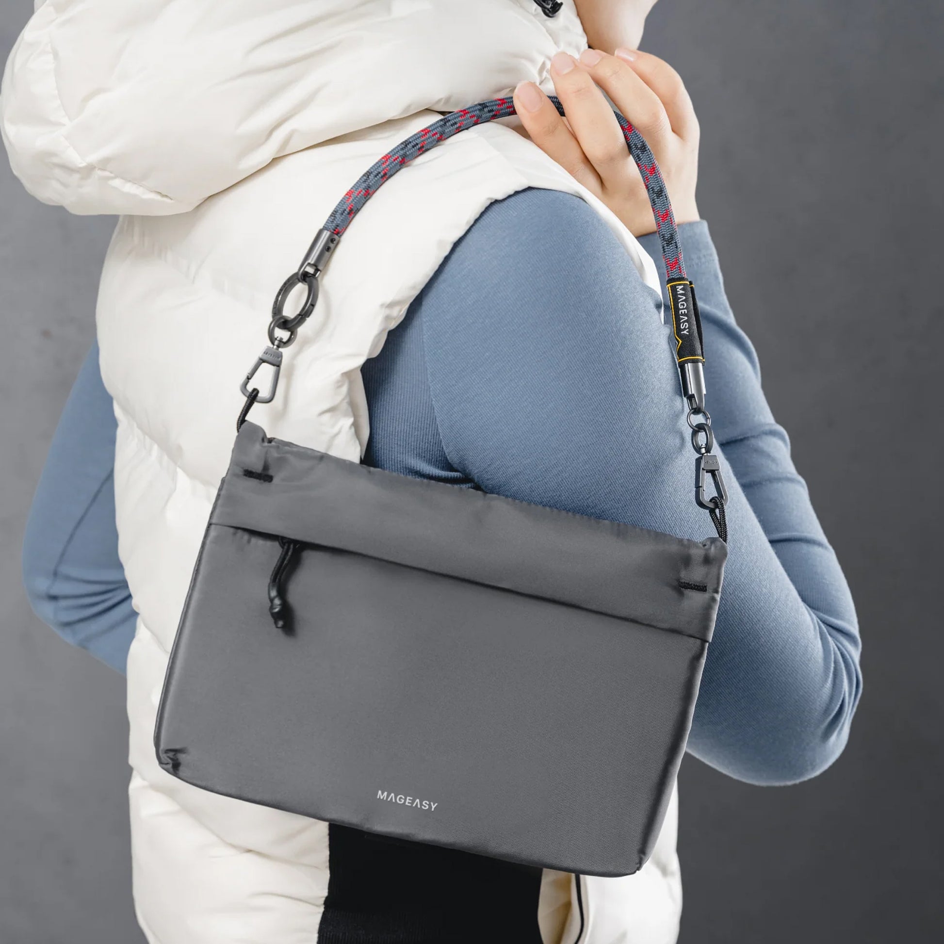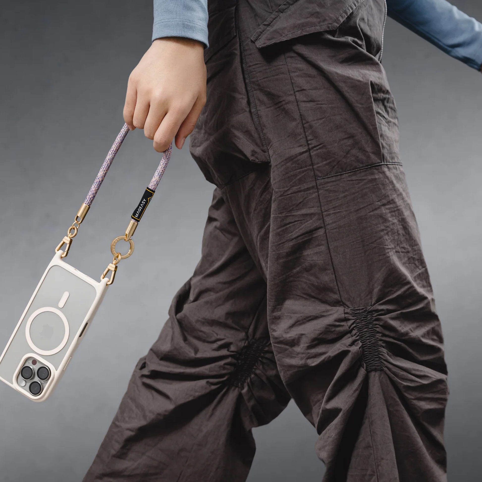 MAGEASY 8.3mm Wrist Strap + Strap Card. Vibrant colors meet intricate weaving, with an 8.3mm design that reduces wrist strain during extended wear. The metal buckle is also compatible with various dual-clip products and other accessories. The lightweight strap card fits seamlessly with most phone cases without obstructing the charging port.