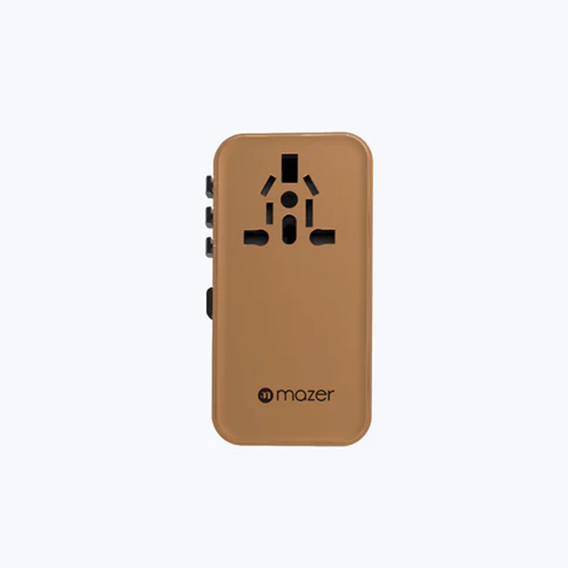 MAZER Infinite Travel Adapter PD100W GaN Universal Travel Charger With Built-in USB C Cable.