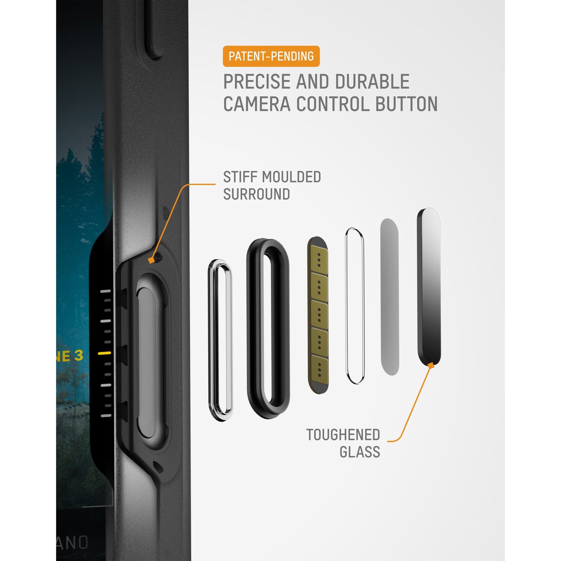 • Camera Control Button with triple-shot surround for stiffness, alignment and lasting durability.