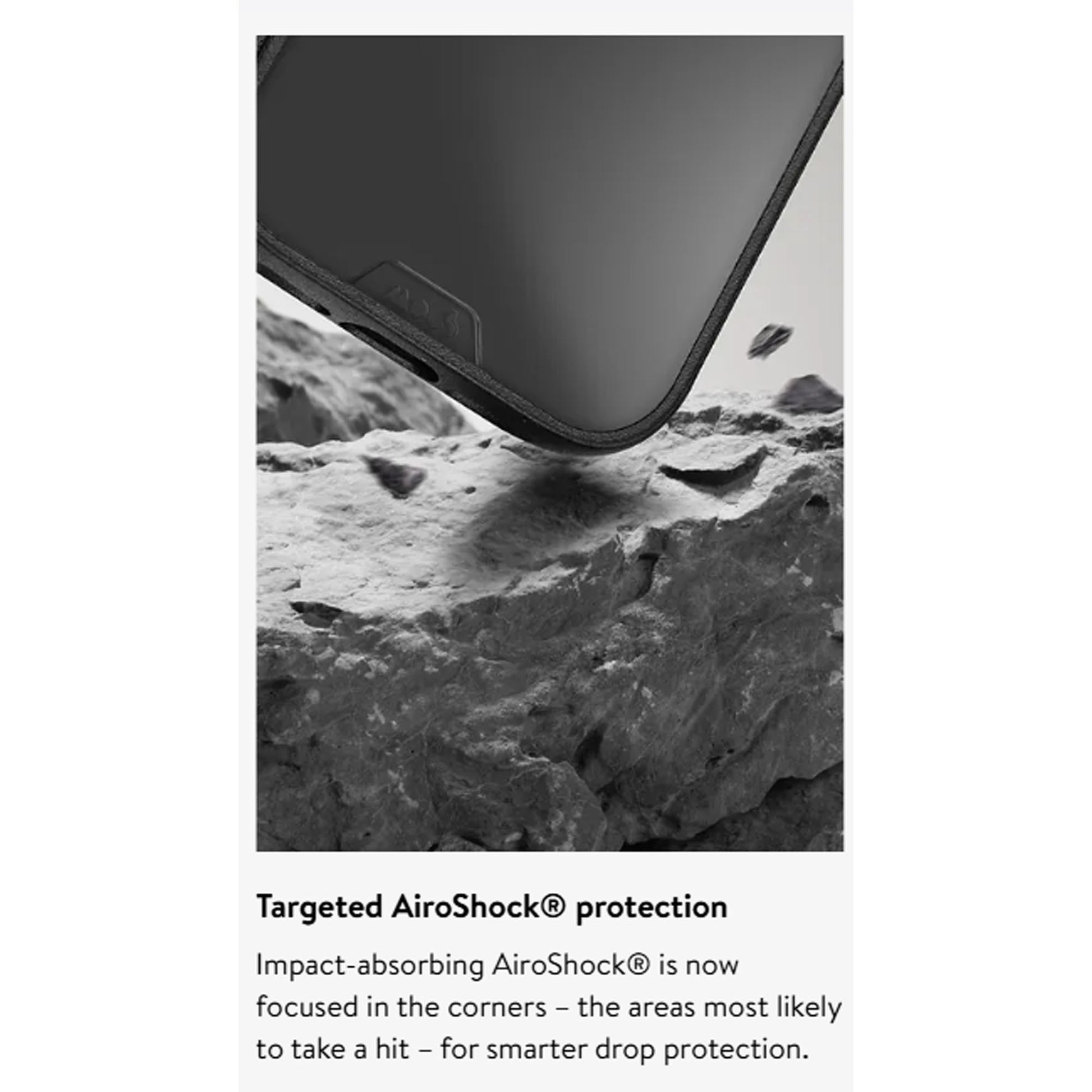 • Reinforced corners with AiroShock® for extreme protection from drops and shocks.